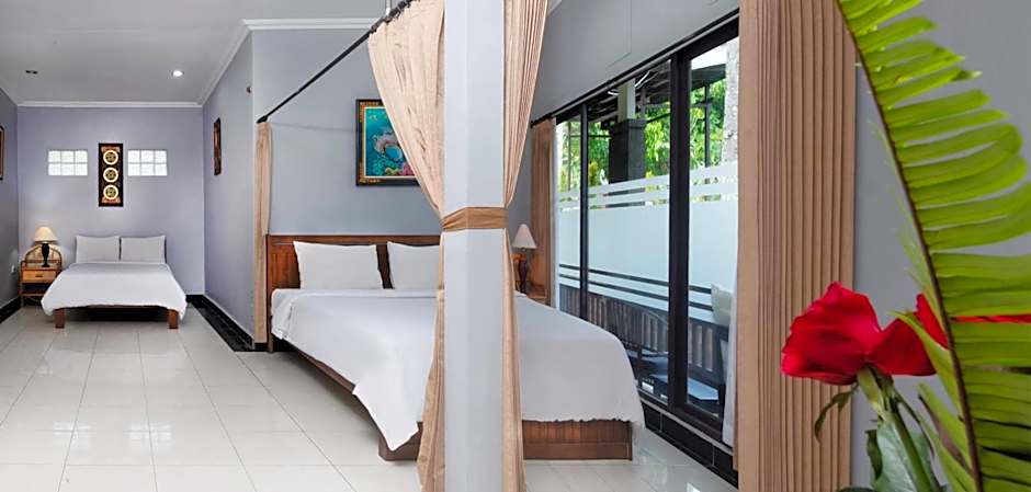 The spacious family room features air conditioning, a private entrance, a terrace with pool views as well as a private bathroom boasting a walk-in shower. The unit has 2 beds.